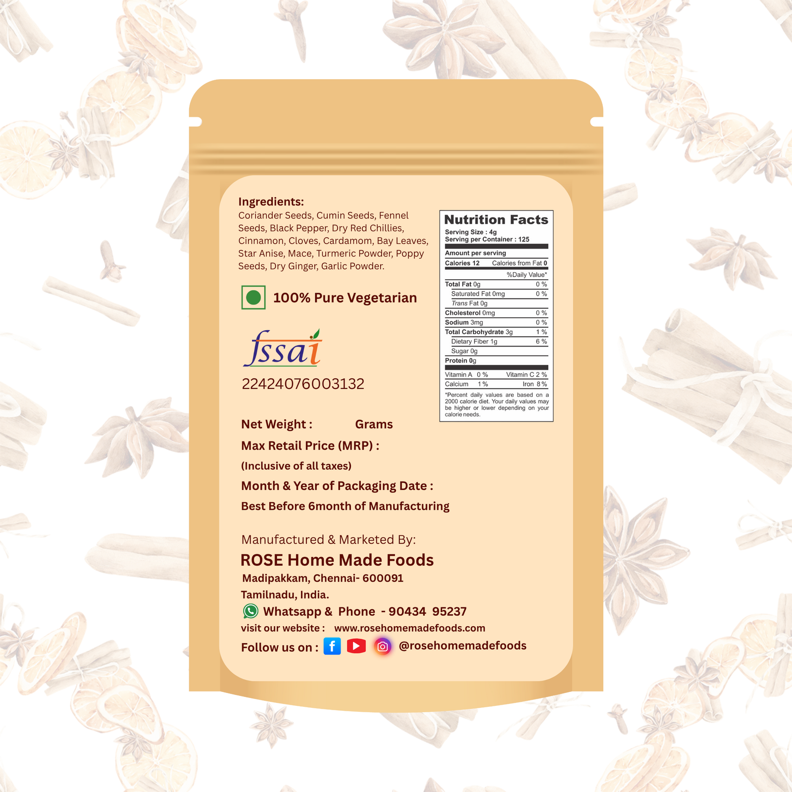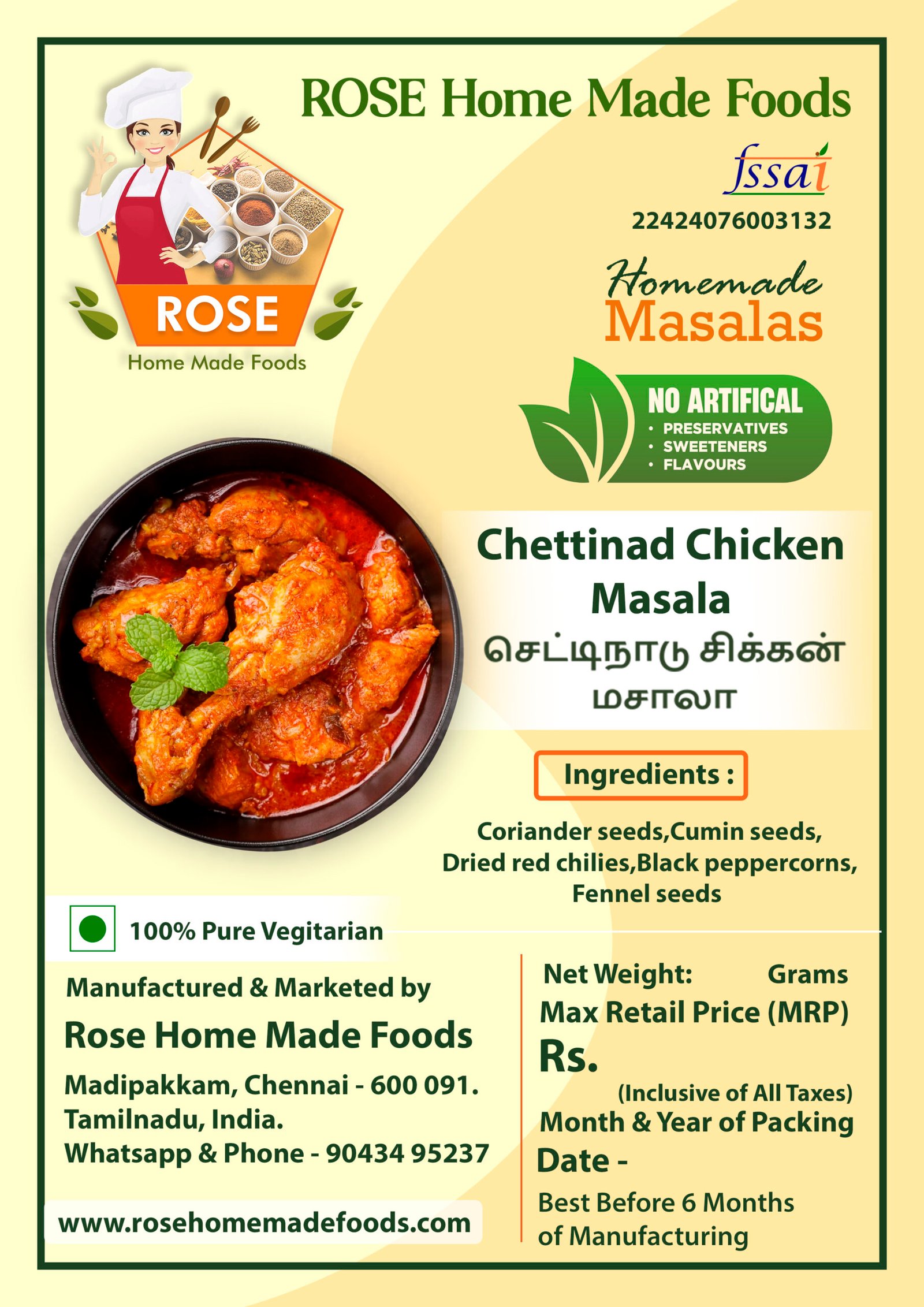 Chettinad Chicken Masala is a bold, aromatic spice blend with a perfect balance of heat and flavor, ideal for making rich and flavorful Chettinad-style chicken curry.