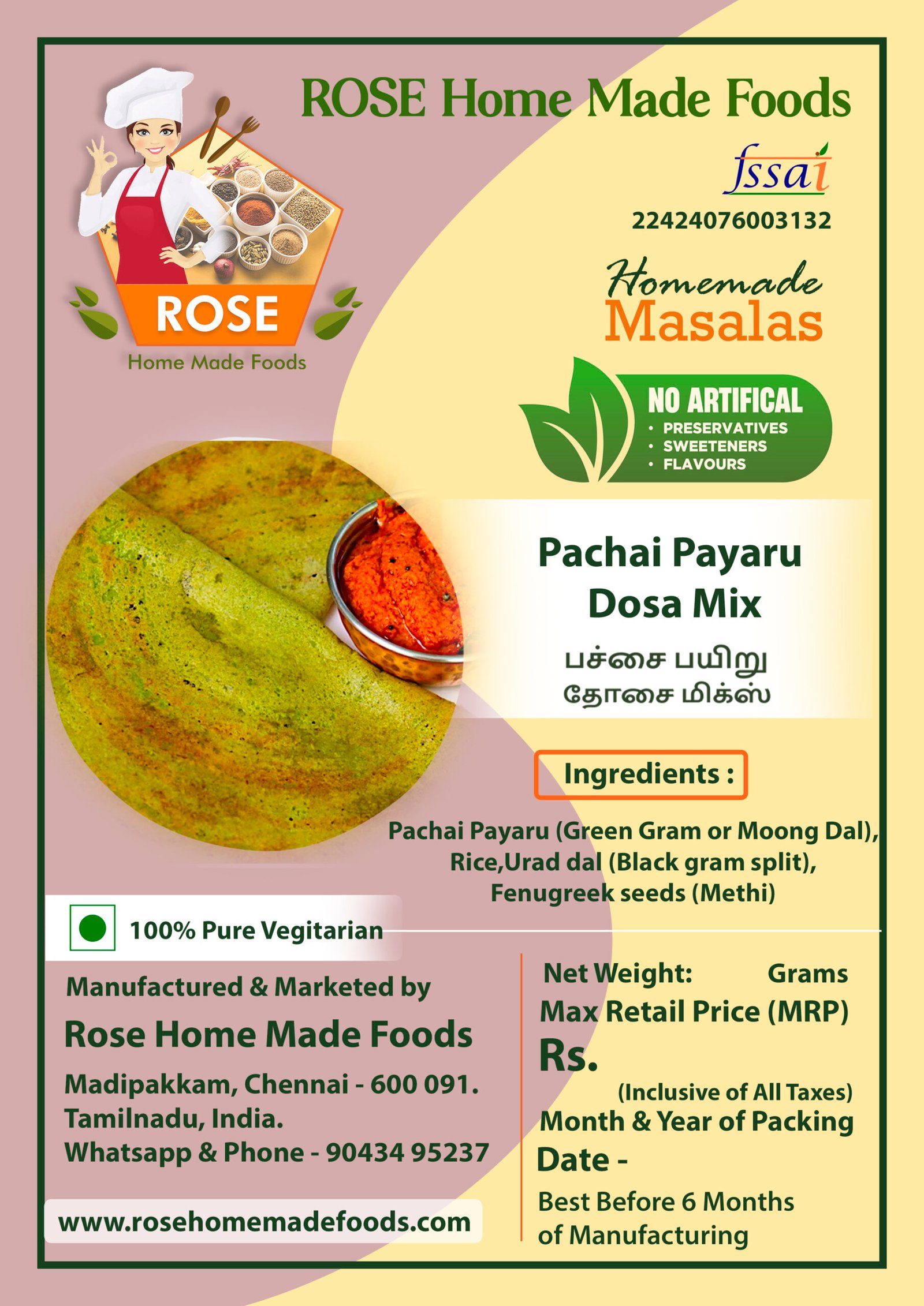 Green Gram Adai Dosai is a healthy, protein-packed mix for making crispy, savory adai dosas. Simply mix with water and cook for a nutritious meal, perfect for breakfast or a snack, rich in the goodness of green gram.